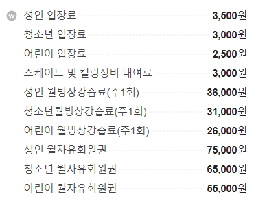 상단에 이용료와 강습안내 대관안내 설명서가 쓰여있네요. 높아서 잘 안 보임...