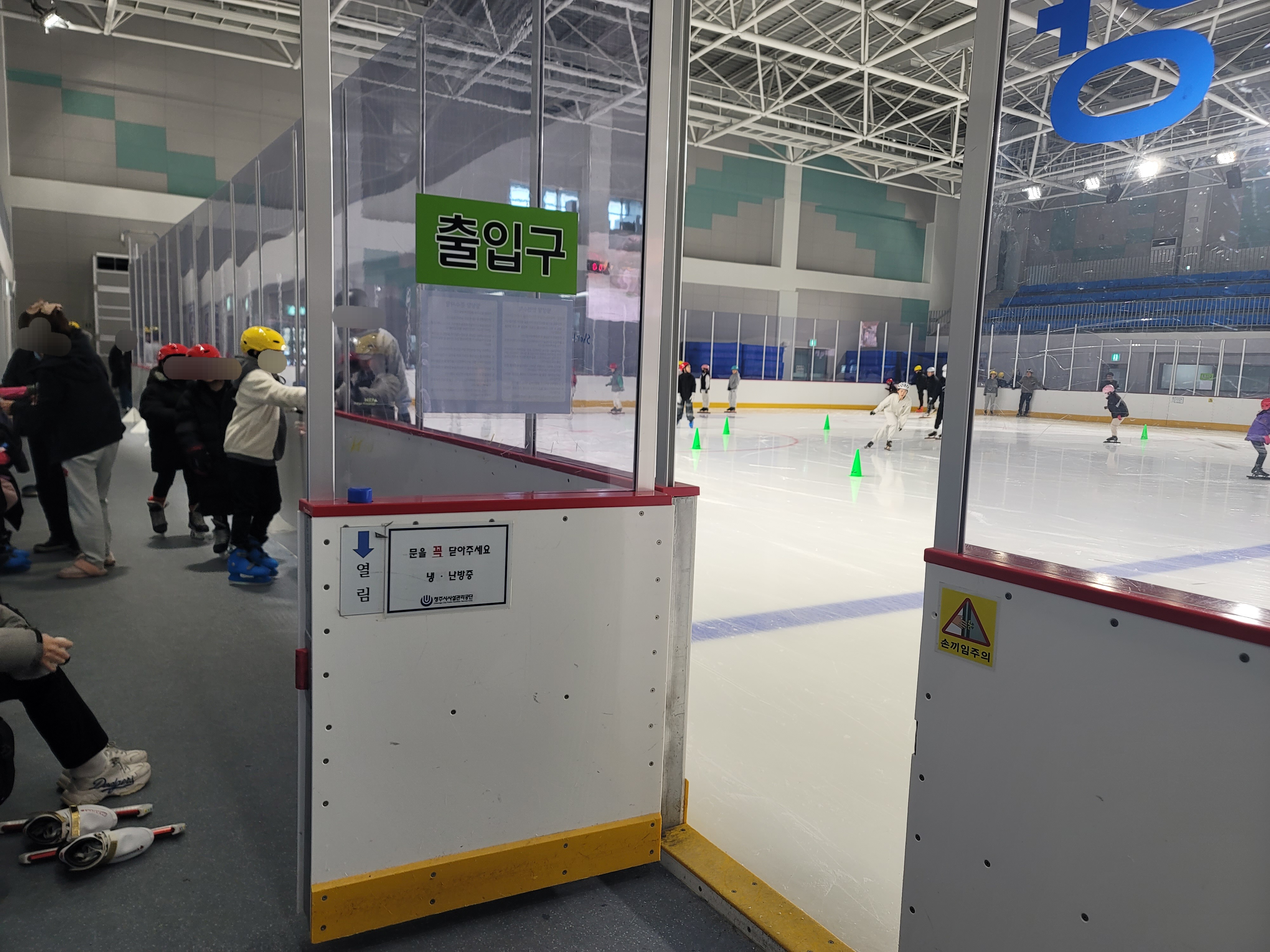 빙상장에 출입구가 4곳정도 있고, 이 안으로 출입합니다.